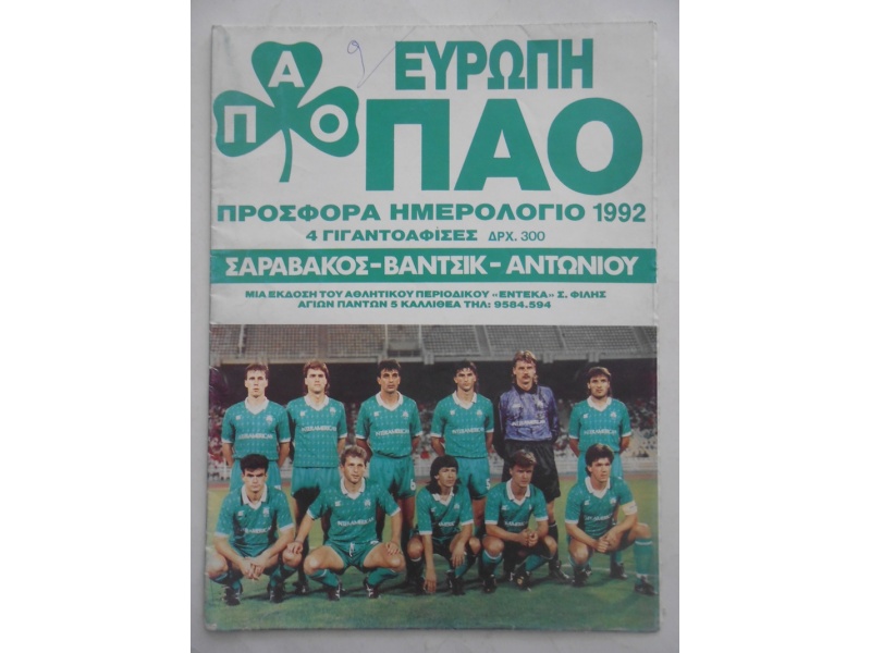 Αφίσσα Ευρώπη ΠΑΟ, μία προσφορά με ημερολόγιο του ΠΑΟ γιά το 1992, ειδική έκδοση του περιοδικού Έντεκα